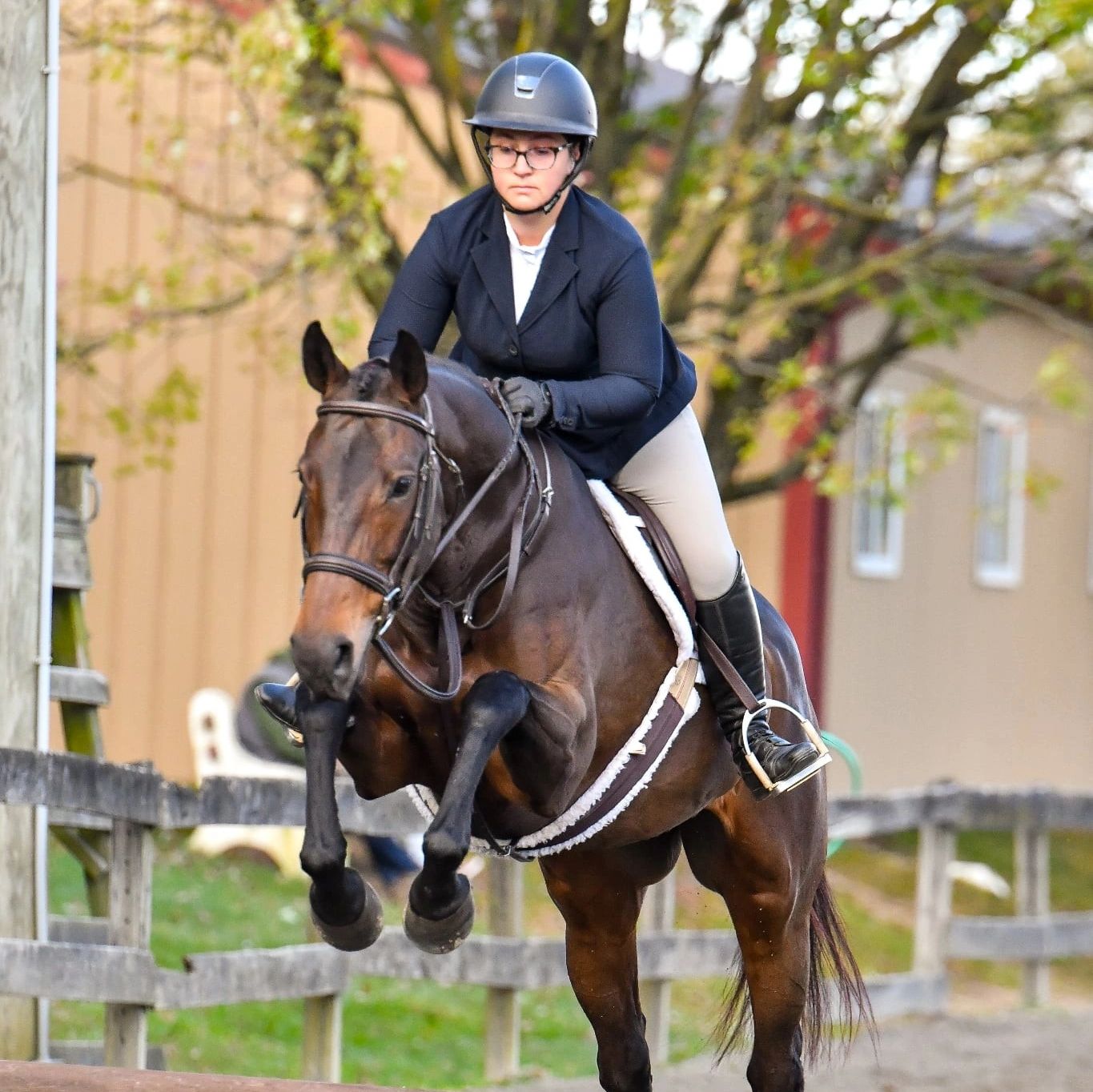 Latte is a 5 year old OTTB standing around 16hh! Latte is as sweet as they come, enjoys snuggles & kisses! Latte will be showing in the 2ft hunters this 2026 season!